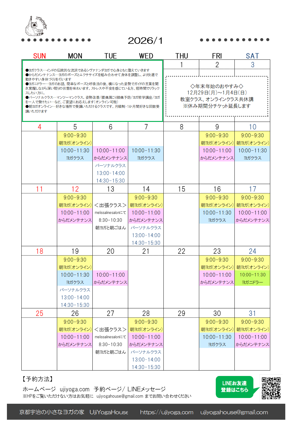 12月29日(月)~1月4日(日)教室クラス、オンラインクラス共休講